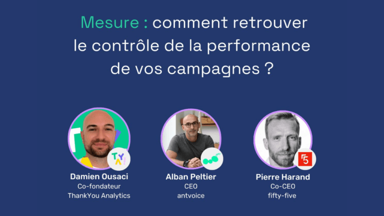 Webinaire animé par Alban Peltier CEO de antvoice, Pierre Harand, Co-CEO de fifty-five et Damien Ousaci, Co-fondateur de ThankYou Analytics.