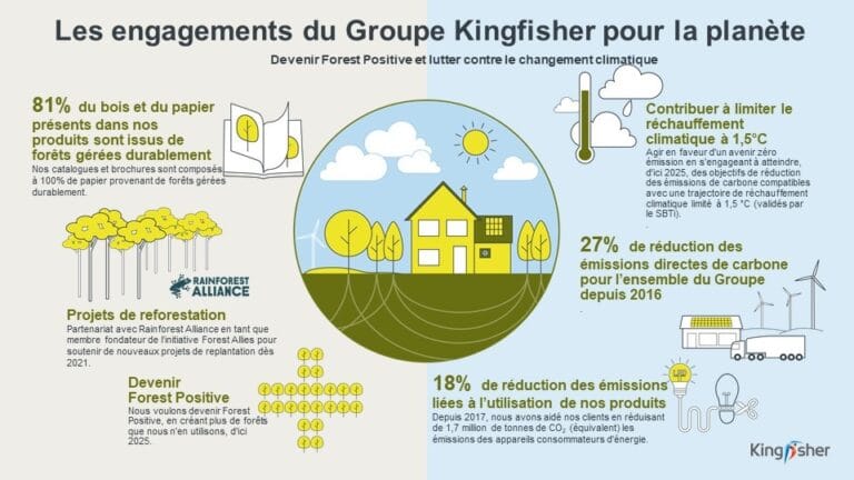 Kingfisher se retrouve dans la ligne de mire des retailers qui doivent se transformer face aux enjeux climatiques. Après avoir déjà divisé par deux ses émissions scopes 1 & 2 depuis 2016, le groupe intensifie sa démarche en y ajoutant le scope 3 (chaîne de valeur). L’initiative est certifiée par la Science-Based Target initiative (SBTi), avec des objectifs chiffrés dès 2030.