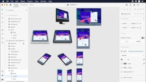 Adobe XD propose également un ensemble complet d’options d’exportation, notamment : Adobe Illustrator (.ai), Adobe PDF (.pdf), JPEG, PNG, SVG (.svg), Photoshop (.psd), Adobe Flash SWF, HTML5 Canvas (SVG ou Bitmap).