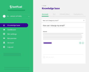 Botfuel fournit une plateforme de Commerce Conversationnel créée et pensée pour les équipes marketing. Grâce aux conversations et à l’IA, notre solution permet d’offrir aux clients le niveau d’accompagnement et de conseil que l’on trouve en magasin.