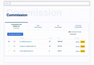 Plutôt que d’envoyer un contrat par courrier ou un chèque, vos affiliés peuvent immédiatement et simplement être rémunérés en fonction de leur planning (trimestriel, mensuel, etc.) via PayPal, Recurly ou un compte web personnalisé.