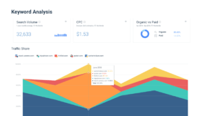 Découvrez les mots-clés en vogue en matière de SEO, CPC et contenu ainsi que les sites Web qui obtiennent, pour chaque mot-clé ou groupe de mots-clés, la plus grande part de trafic